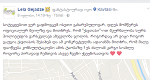 როგორც გეჯაძე სოციალურ ქსელში წერს, მისი დამზადებული ნაყენი  ” ქავთასი”, რომელსაც მეტეხის ტაძრის წინამძღვრის მამა აკაკის კურთხევა აქვს, ბევრ სხვადასხვა დაავადებას კურნავს. როგორც ექიმის ფეიბუქ გვერდიდან ირკვევა, კონსულტაცია მსახიობის ვიზიტთან დაკაშირებით მალე დაიწყება.