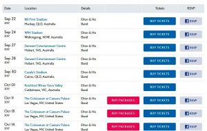 მის ოფიციალურ ვებგვერდზე, მსოფლიო ტურნეს თარიღები უცვლელია: მომღერალი 22 სექტემბრიდან ავსტრალიაში იწყებს კონცერტებს, ერთი კვირის შემდეგ კი აშშ-ში მიემგზავრება.