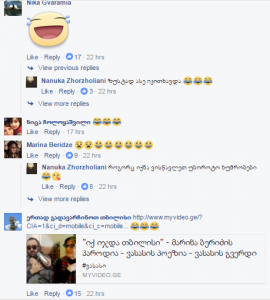 მუსიკოს მარინა ბერიძის მიერ “რუსთავი 2“- ის გენერალურ დირექტორ ნიკა გვარამიაზე თავდასხმის თაობაზე გაკეთებულმა კომენტარმა სოციალურ ქსელში დიდი მითქმა-მოთქმა და განხილვა გამოიწვია. საზოგადოების რეაქციას სოციალურ ქსელში თავად მარინა ბერიძე შემდეგი კომენტარით გამოეხმაურა: „იუმორი თუ გადაგვარჩენს. ეს ბიჭი ნიჭიერია!!!!!“ – წერს მარინა ბერიძე ერთ-ერთ ვიდეოზე, რომელშიც იუმორისტი „ვასასი“ მის პაროდიას აკეთებს და ლექსს ამბობს. ღიმილის გამომხატველი „სმაილით“ შეაფასა მარინა ბერიძემ ამავე თემაზე სოციალურ ქსელში გავრცელებული ხოხბების ფოტოსურათი.
