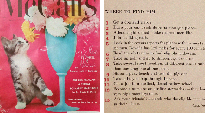 ჟურნალ Mccall-ში 1958 წელს სტატია გამოქვეყნდა “129 გზა გასათხოვებლად”. აღნიშნული სტატია ცოტა ხნის წინ გამოცემა “boredpanda”-მ გამოაქვეყნა და სახალისო გამოხმაურება მოჰყვა.