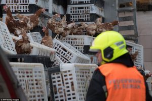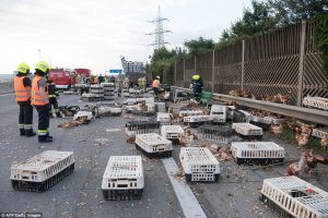 სააგენტო „ფრანს პრესის“ ინფორმაციით, ათასობით ქათამი გზაზე მას შემდეგ აღმოჩნდა, რაც სატვირთო მანქანას, რომელსაც ისინი გადაჰყავდა, მისაბმელი მოსძვრა. ინციდენტი ქალაქ ლინცის მახლობლად მოხდა.