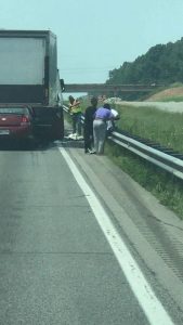 ნორს კაროლინაში გზის მშენებლობა მიმდინარეობდა, სადაც საცობი იყო. მანქანები გაჩერებული იყვნენ. მოულოდნელად, „ტრაილერს“ ცეცხლი გაუჩნდა. წინ კიდევ 4 მანქანა იყო ერთმანეთს შეჯახებული. მიხამ ცეცხლი რომ დაინახა, გაიქცა და მიყვირა: არ გადმოხვიდეო.