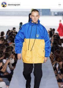 „გაძლიერდი, უკრაინა!“ – დემნა გვასალია ამ წარწერით აქვეყნებს ფოტოს 2019 წლის გაზაფხული/ზაფხულის კოლექციიდან, სადაც მამაკაცის სამოსი უკრაინის დროშიც ფერებით, ყვითლითა და ლურჯითაა წარმოდგენილი.