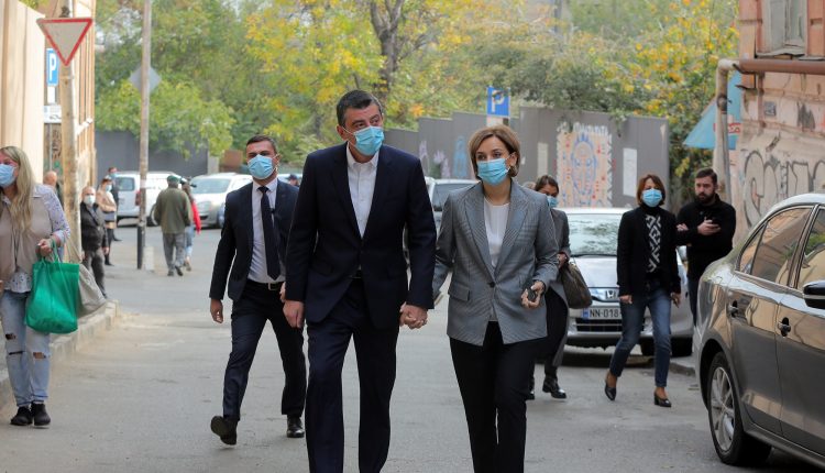 გიორგი გახარია საარჩევნო უბანზე საკუთარი ხმის დასაფიქსირებლად ცოლთან ერთად ხელჩაკიდებული მივიდა (ფოტო)