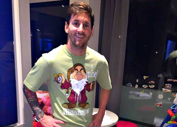 “ძალიან დიდი მადლობა ჩემს მეგობარს ლუის სუიარსს, ასეთი საჩუქრისთვის – პიჟამასთვის. თუმცა, ვერ ვხვდები, ბუზღუნა ჯუჯა (ფიფქია და შვიდი ჯუჯადან) რა შუაშია?” – დაწერა ლიონელ მესიმ.