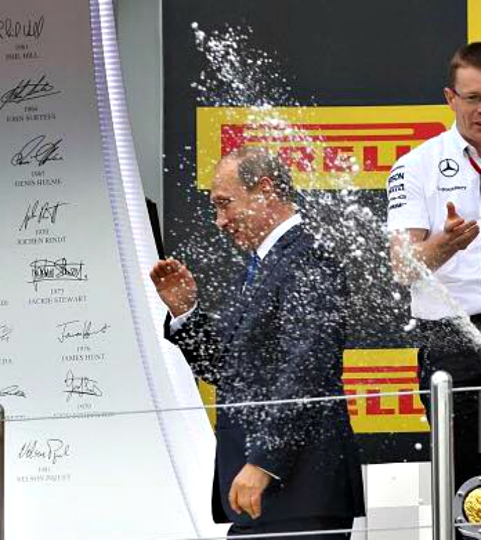 ლუის ჰემილტონმა შამპანიურის ქაფით რუსეთის პრეზიდენტი გაწუწა. “მერსედესის” გუნდის მრბოლელს ვლადიმერ პუტინმა გრან-პრი გადასცა, რა დროსაც ემოციებისგან აჟიტირებულმა სპორტსმენმა, აქაფებული ბოთლიდან ალკოჰოლი არც მეტი, არც ნაკლები -რუსეთის პრეზიდენტს მიასხა. პუტინმა ეს ჟესტი რა თქმა უნდა, ხუმრობად მიიღო და გაიღიმა.