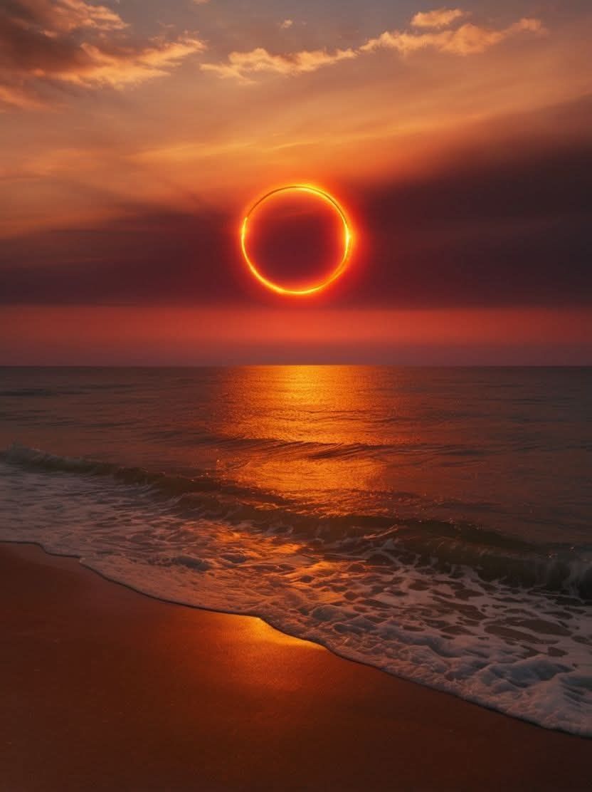 რამდენიმე წუთის განმავლობაში, ოკეანემ მზე ცეცხლის რგოლში მოაქცია. ![]()