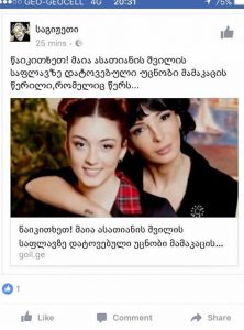 მაია ასათიანი თოქ შოუ “პროფილის” ფეისბუქ გვერდის საშუალებით განცხადებას ავრცელებს ჟურნალისტი ერთ-ერთ სააგენტოს მიმართავს. როგორც განცხადებიდან ირკვევა სააგენტო ჟურნალისტის გარდაცვლილ შვილზე წერს.