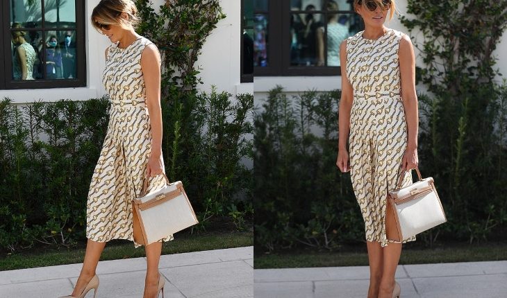 დახვეწილ და გემოვნებიან მელანიას ამჯერად ცნობილი სამოდელო სახლის – Gucci-ს კაბა ეცვა, რომლის ღირებულებაც 4.500 დოლარი გახლავთ.