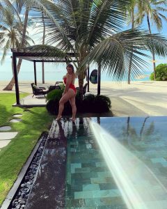 სოფიამ ორნაირი საცურაო კოსტიუმი მოირგო და პალმების ქვეშაც იპოზიორა.