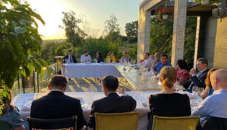 ,,ვენახში, სადაც ჩაყრილი მაქვს საფერავი, რომელმაც წელს პირველად გაიხარა, მივიღე დიდი შვიდეულის ელჩები: აშშ-ის, კანადის, ინგლისის, ევროკავშირის, საფრანგეთის, იტალიის, გერმანიის, იაპონიის და ასევე უკრაინის მთავრობის რამდენიმე წევრი.