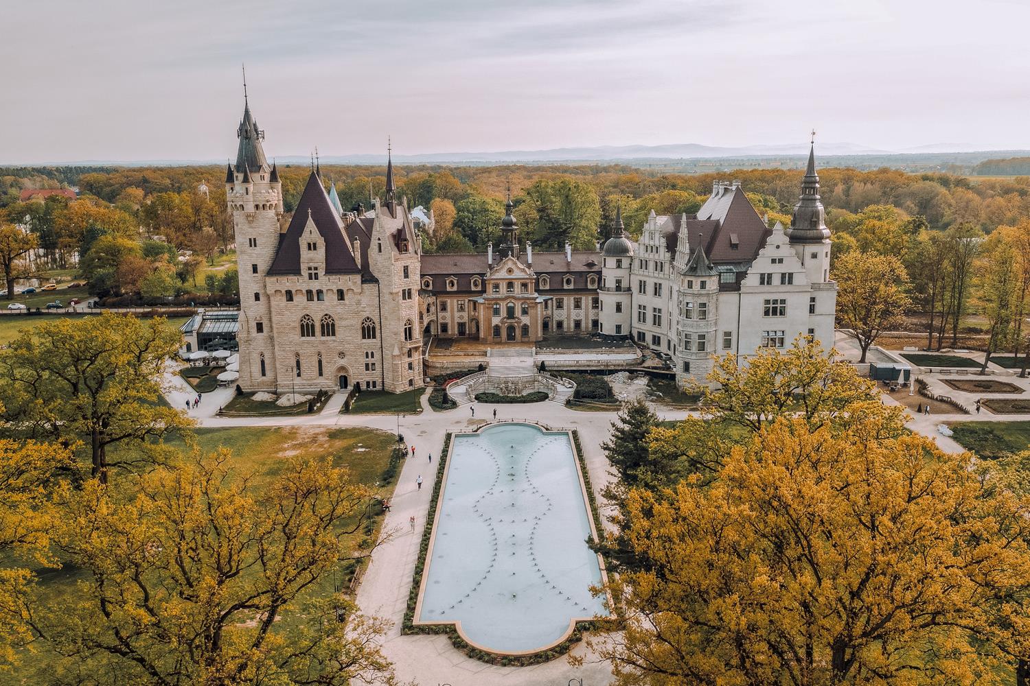 პოლონეთში მდებარე მოშნას სასახლე ერთ-ერთი ყველაზე უჩვეულო და ზღაპრულად შთამბეჭდავი არქიტექტურული ნაგებობაა ევროპაში. მას ხშირად „99 კოშკის სასახლეს“ უწოდებენ — სწორედ იმდენი კოშკი ამშვენებს შენობას, რაც მას თითქმის ფანტასტიკური ფილმის დეკორაციას ამსგავსებს.