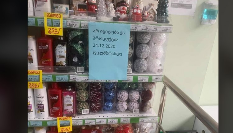 სოციალურ ქსელში ვრცელდება ფოტო, სადაც ჩანს წარწერა იმის შესახებ, რომ “სუფთა სახლში” საახალწლო პროდუქციის გაყიდვა 24 დეკემბრამდე აიკრძალა.