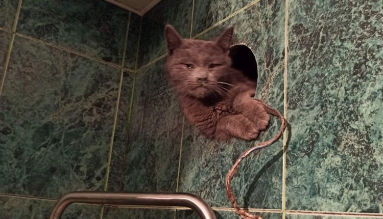 ქუთაისში მაშველებმა სავენტილაციო მილში გაჭედილი კატა გადაარჩინეს. ფოტო სოციალურ ქსელში გიორგი თუხარელმა გამოაქვეყნა.
