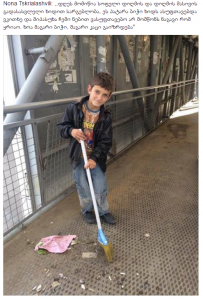 ფეისბუქმომხმარებელი ნინო წკრიალაშვილი სოციალურ ქსელში პატარა ბიჭის შესახებ წერს, რომელიც თბილისში მდებარე ერთ-ერთ ხიდს საკუთარი სურვილით ასუფთავებს.