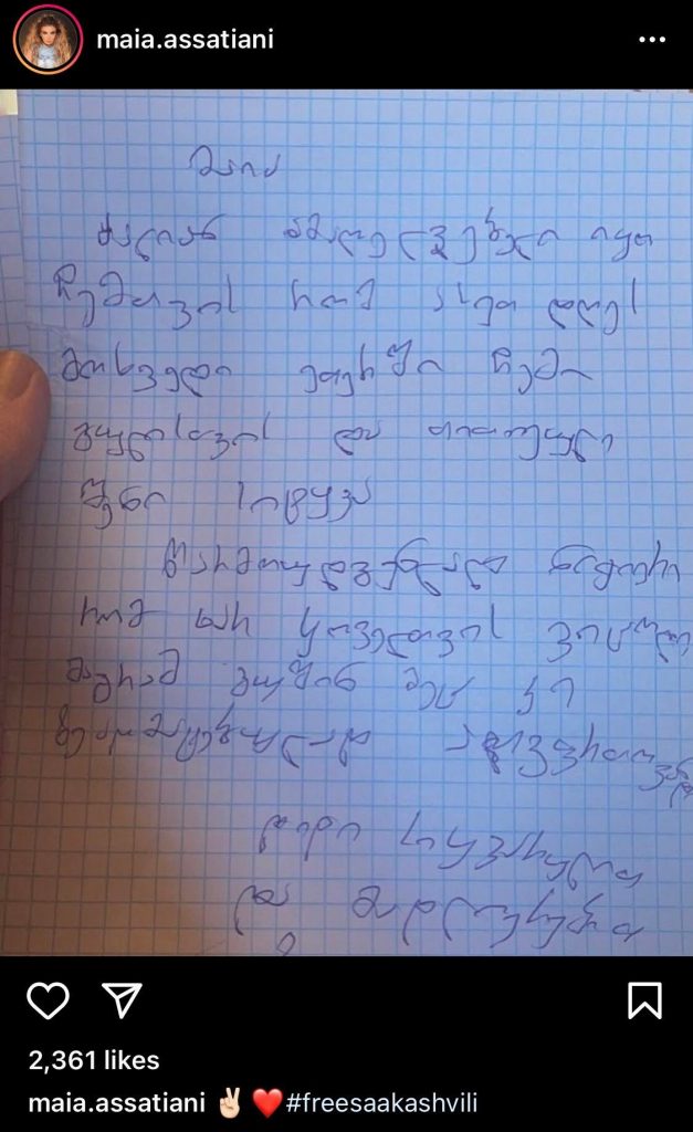 წერილის ფოტო ასათიანმა ინსტაგრამის გვერდზე გამოაქვეტნა: