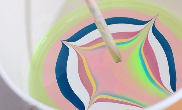 3. წვეთები ნელ-ნელა წრეს შეკრავს და შედეგად, ფერადი სამიზნის მსგავს ნახატს მიიღებთ.