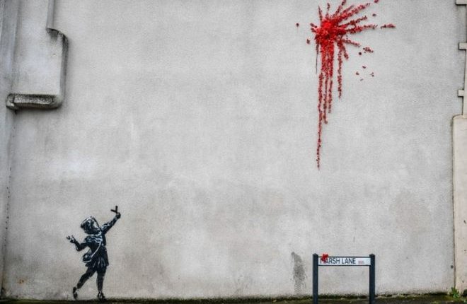 ბენქსიმ ბარტონ–ჰილის რაიონში, ერთ–ერთ კედელზე ახალი გრაფიტი დახატა. კედელზე გამოსახულია გოგონა შურდულით ხელში, რომელიც ყვავილებს ისვრის.